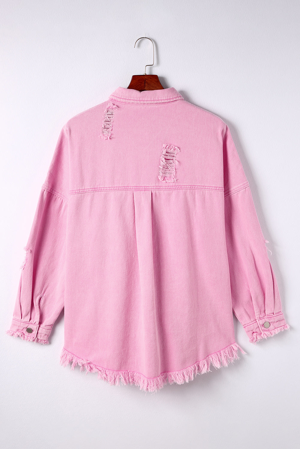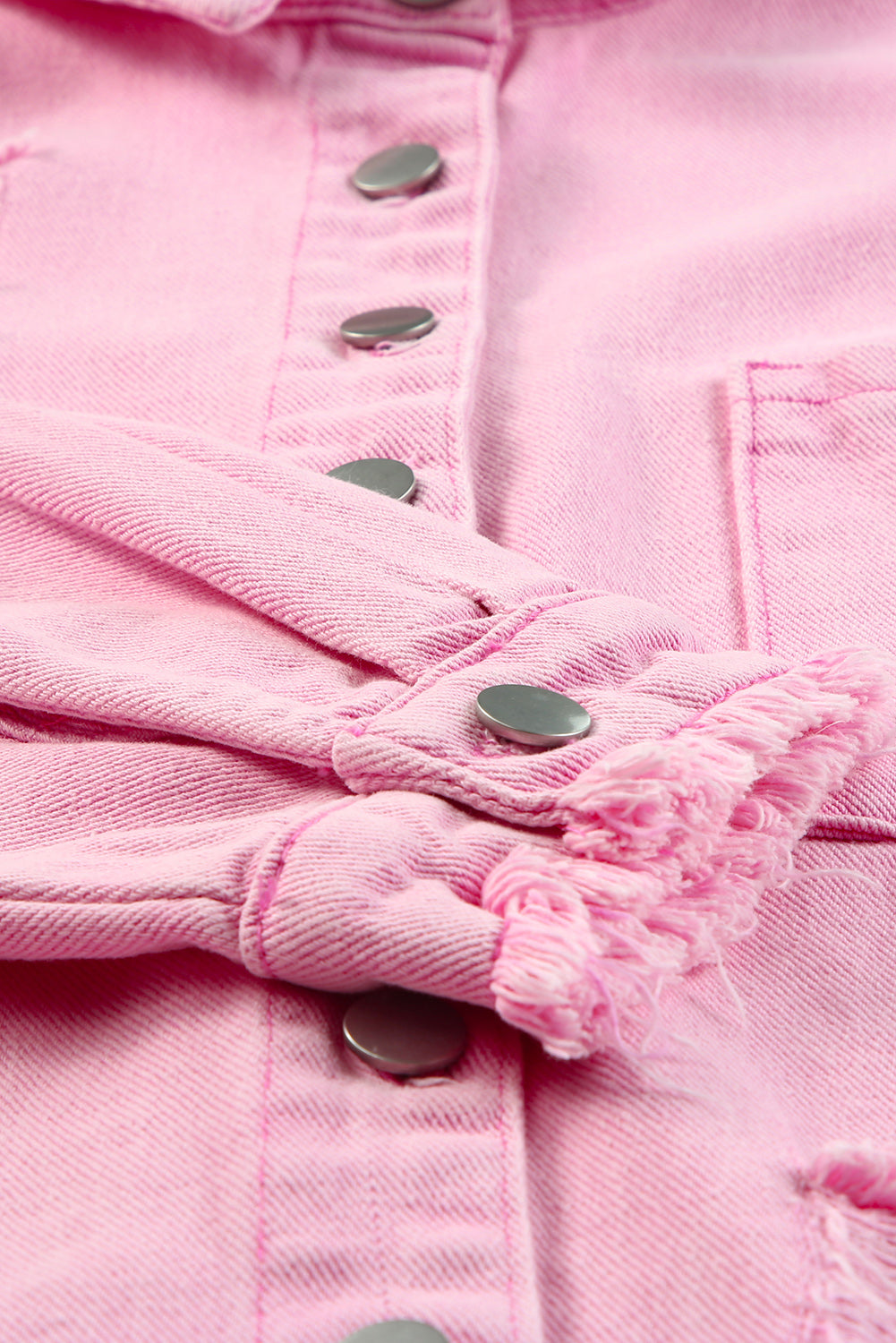 Distressed Button Up Raw Hem Denim Jacket
