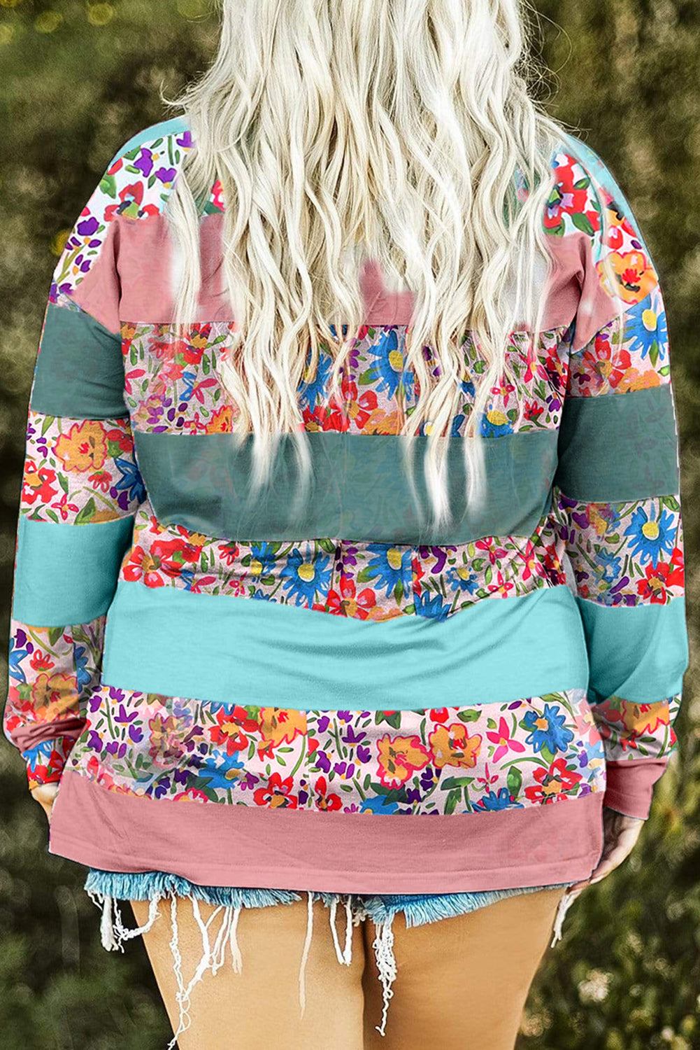 Plus Size Striped Slit Long Sleeve T-Shirt