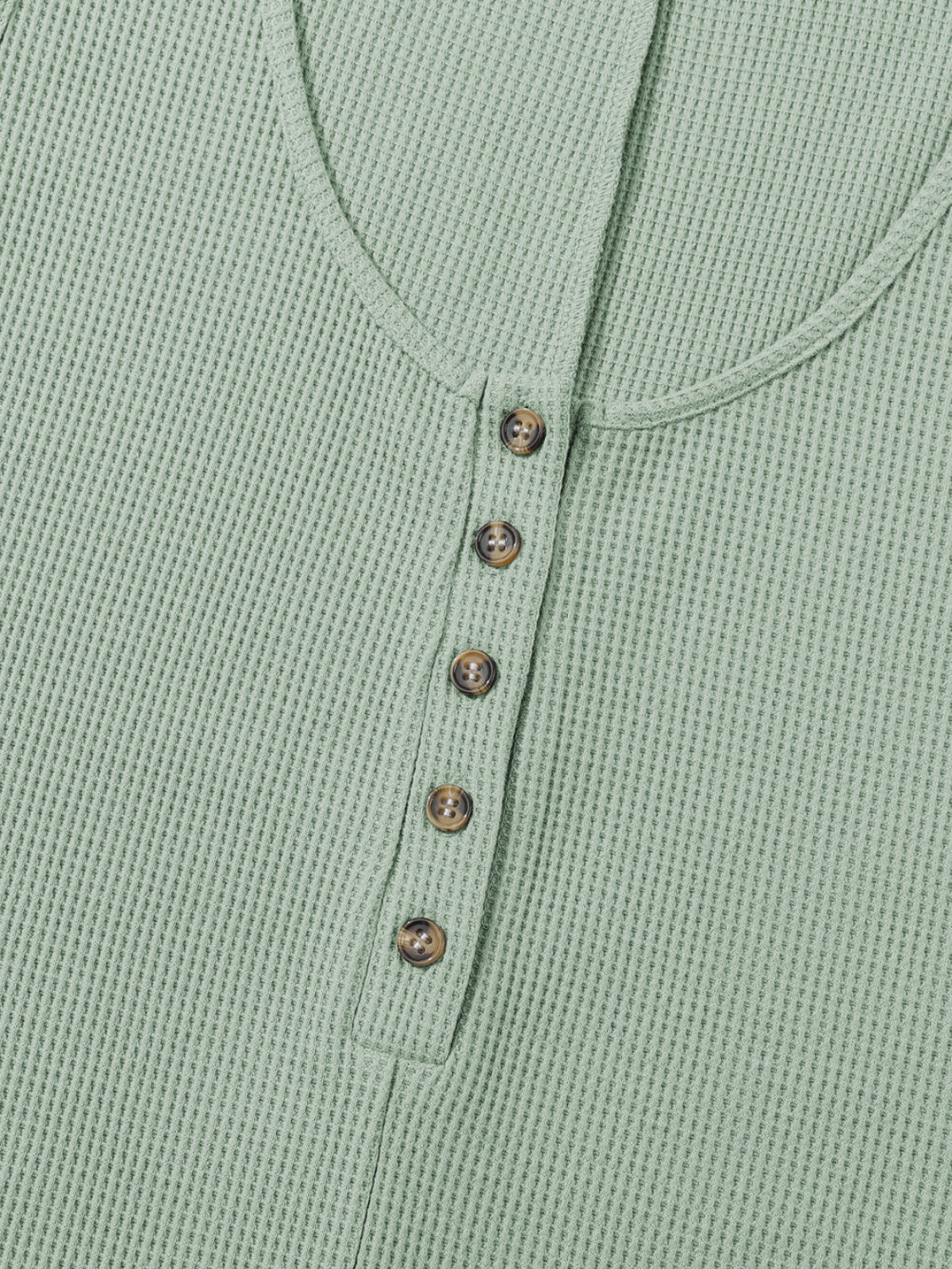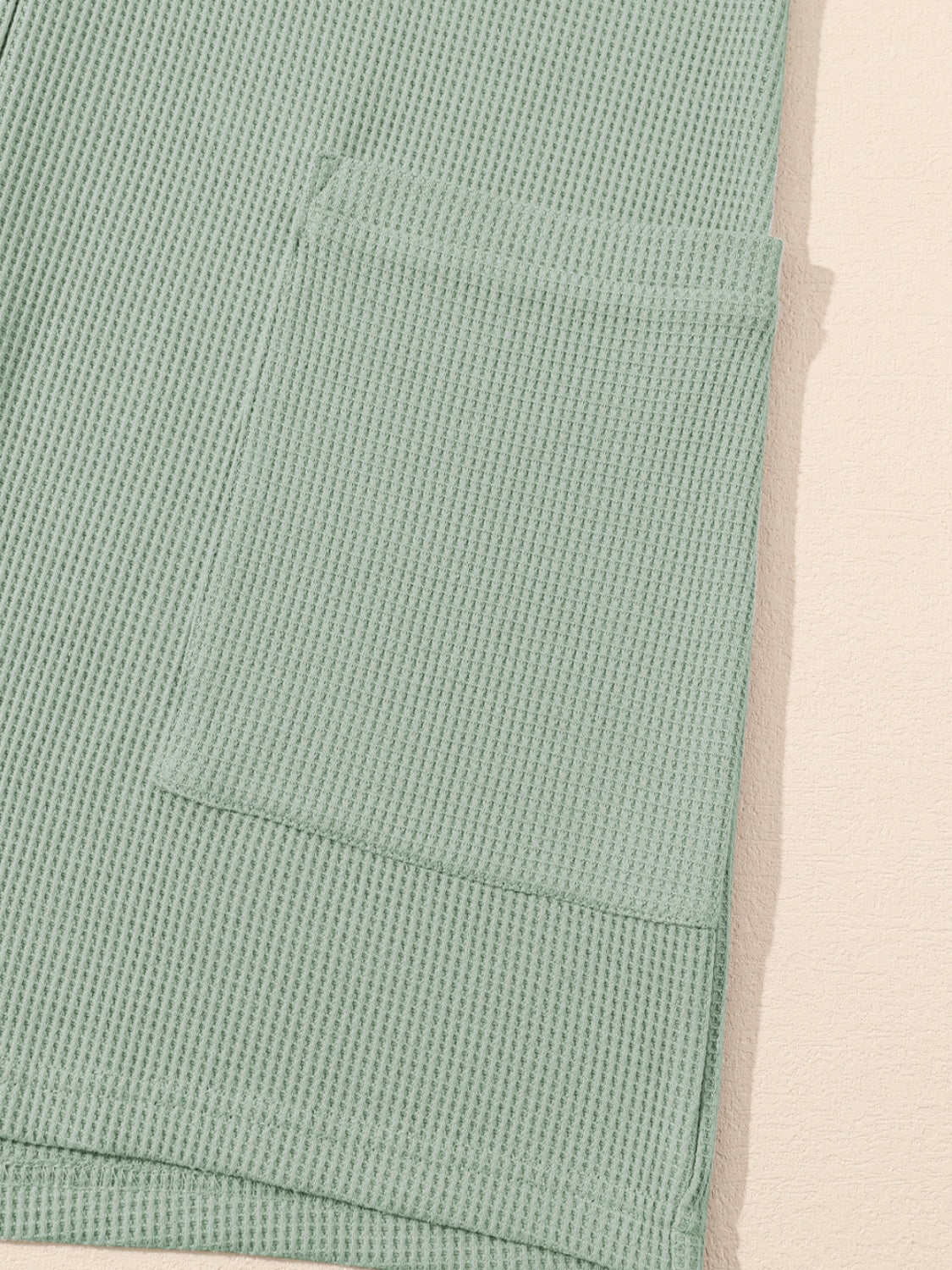Waffle-Knit Half Button Sleeveless Romper with Pockets